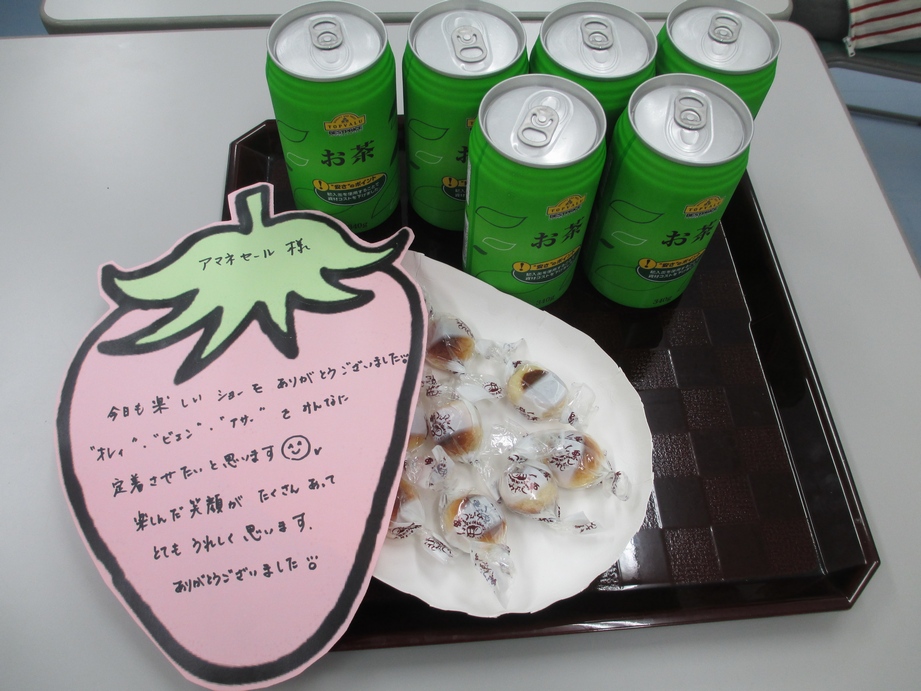 終わった後、メセージ付きのお茶とお菓子をいただきました。