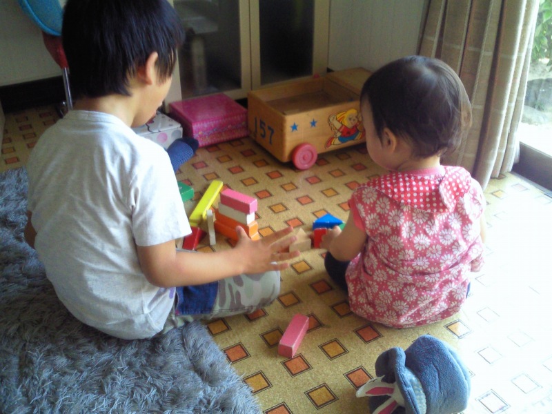 妹のために積み木をする姿