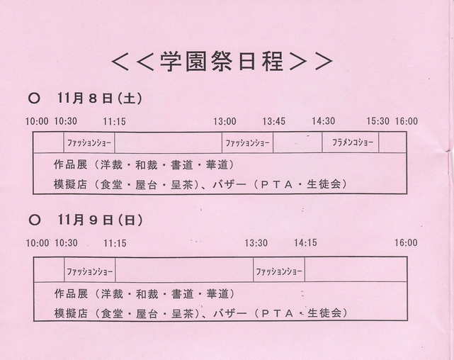 白百合学園祭の日程です。