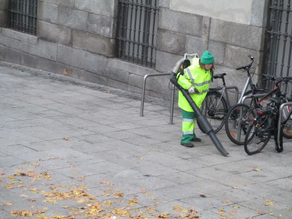 落ち葉を吹き飛ばし
